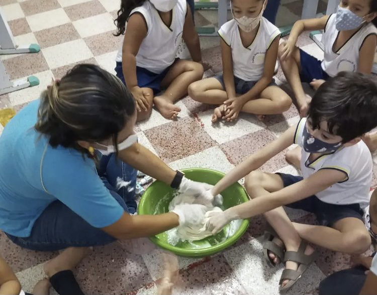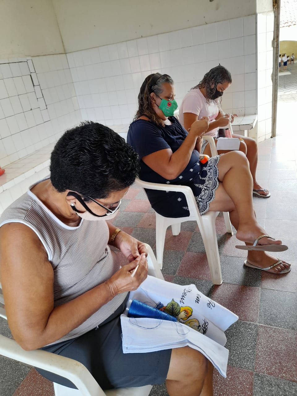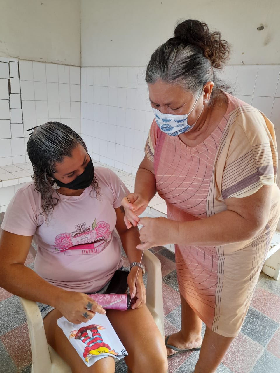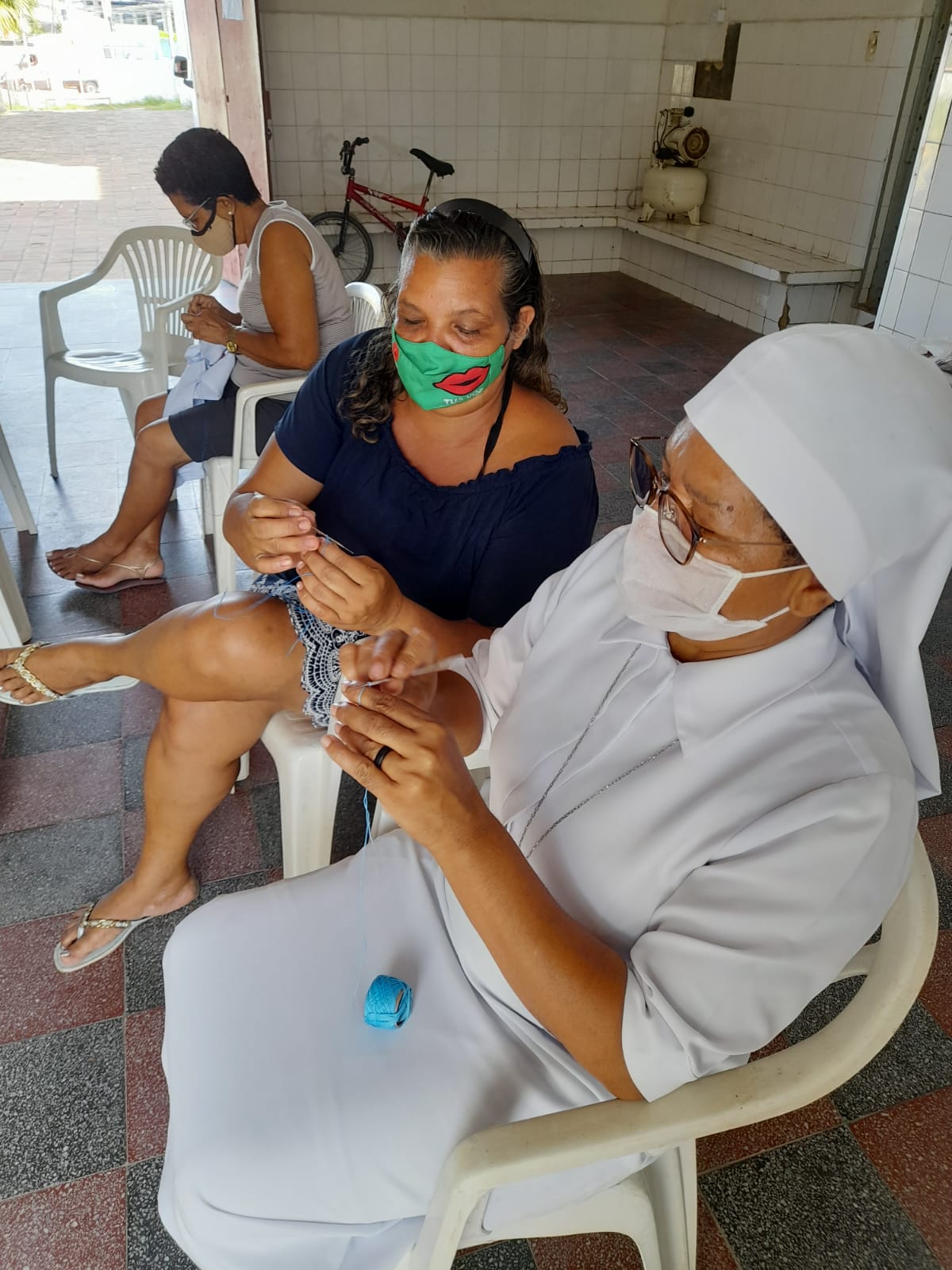 Já em Olinda, no Educandário Santa Tereza, a arte segue a todo vapor, mas dessa vez com as mamães das estudantes. Foi dado início à oficina de crochê, que acontecerá às tardes das sextas e se estenderá a tias, avós das alunas e outras mulheres das comunidades do entorno. “A instrutora é a Dona Socorro, que aprendeu crochê no educandário e hoje está ensinando às mães. Por isso, essa atividade tem um valor ainda mais especial para nós”, explica a Irmã Eva Albuquerque, gestora da unidade.